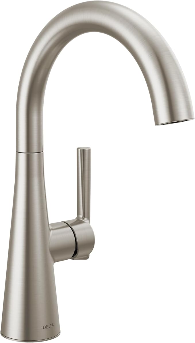 Enhance your bar sink setup with the Delta Modern Brushed Nickel Single Hole Bar Sink Faucet. Built for style and performance, this faucet combines sleek design with dependable functionality, making it a top contender for the best bar sink faucet choice, ensuring a clean, sophisticated look for your space.