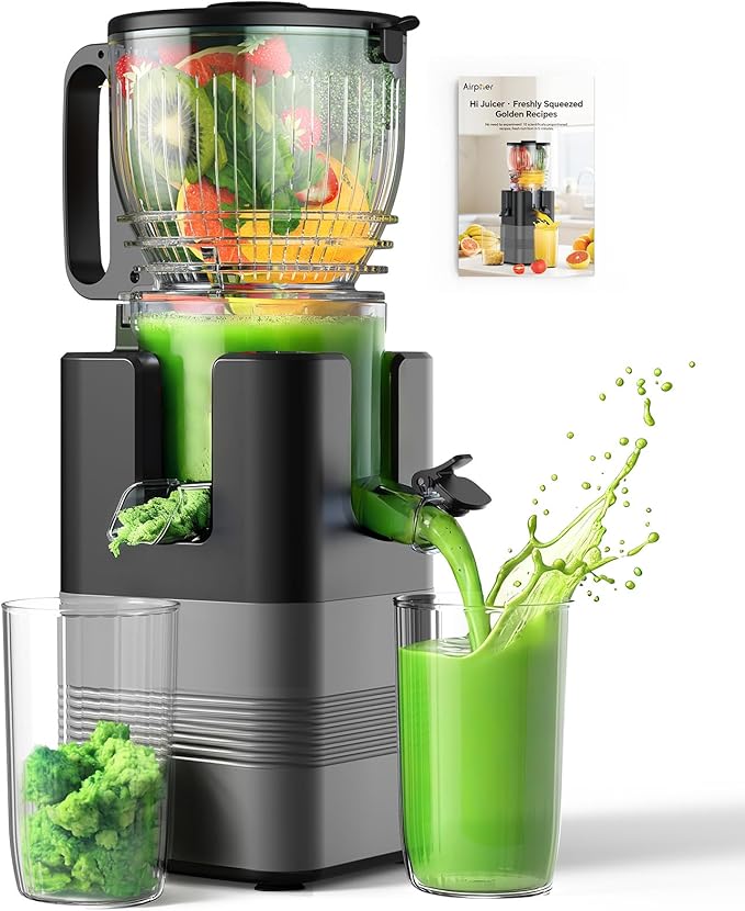 Experience the ultimate in-home juicing with the Airpher 400W Cold Press Juicer, designed to extract maximum nutrients from whole fruits and vegetables effortlessly. Its wide
