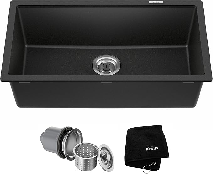Transform your kitchen into a luxurious space with the KRAUS Quarza 31-inch Undermount Single Bowl Granite Kitchen Sink. Offering the perfect blend of durability and elegance, this sink elevates your culinary environment with a modern, seamless design that integrates effortlessly into any countertop, making it one of the best sinks for kitchen upgrades.